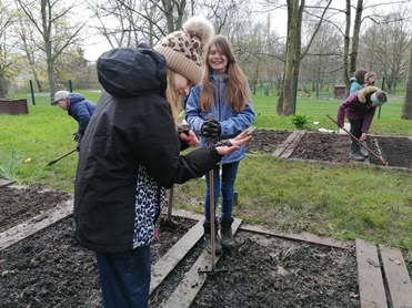 Die Klasse 4a startete trotz kaltem Wetter in die Schulgartensaison. Große Unterstützung und fachliche Hilfe bekamen wir dabei von unserem Präventions-
