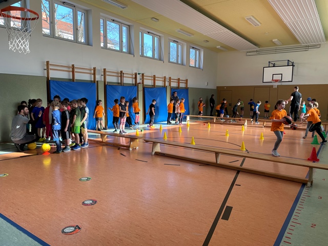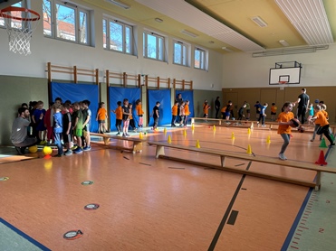 Die Schüler und Schülerinnen übten ihre Ballfähigkeiten an verschiedenen Stationen.