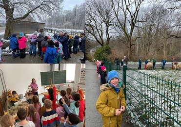 Im März war es so weit, die Klassen 2a und 2b durften einen Tag auf dem Bauernhof verbringen. Neben Pferden, Hunden, Hühnern und Hasen, gab es auch Besonderes zu entdecken. Fledermäuse, die im Stall herumflogen und das ein Monat alte Kälbchen, wie es mit seiner Mama kuschelte. Außerdem durfte fleißig geholfen werden - Ställe der Pferde säubern und mit Futter bestücken. So schnell war der Bauer noch nie damit fertig. Was für ein schöner Tag!