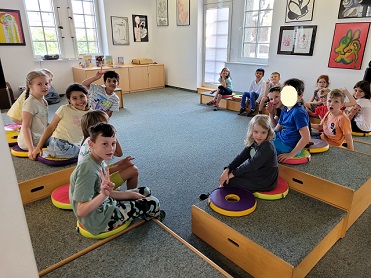 Auch das Schreiben auf einer Schiefertafel mit Griffel wurde geübt. Die Kinder konnten im Museum all die Dinge entdecken, die wir zuvor im Schulbuch