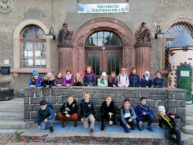 Heute besuchte die Klasse 4a das Schulmuseum in Ebersdorf. Wir begaben uns auf eine Zeitreise und erlebten ein Klassenzimmer vor 100 Jahren.