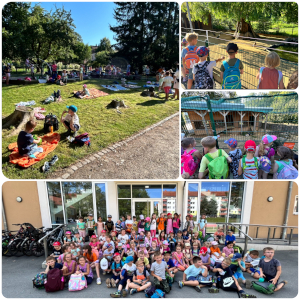Am 16.08.2024 wanderten alle Erstklässler gemeinsam durch den Crimmitschauer Wald zum Botanischen Garten. Dort schauten wir uns die Tiere an und frühstückten zusammen auf der Wiese. Nachdem sich die Kinder auf dem Spielplatz austoben konnten, brachten noch zwei liebe Mamas eine Runde Eis für alle vorbei. Das rundete den ersten Wandertag wunderbar ab. Vielen Dank dafür!