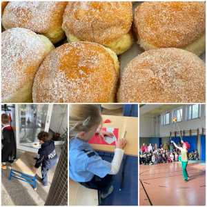 Fee, Giraffe, Feuerwehrmann und Co. feierten am 04.03. gemeinsam Fasching. Die Kinder konnten an verschiedenen Stationen wie Basteln, Zeitungstanz, Eierlauf und einer Talentshow ihre Kreativität und ihr Können unter Beweis stellen. Danach gab es für alle Kinder eine Runde Pfannkuchen.
